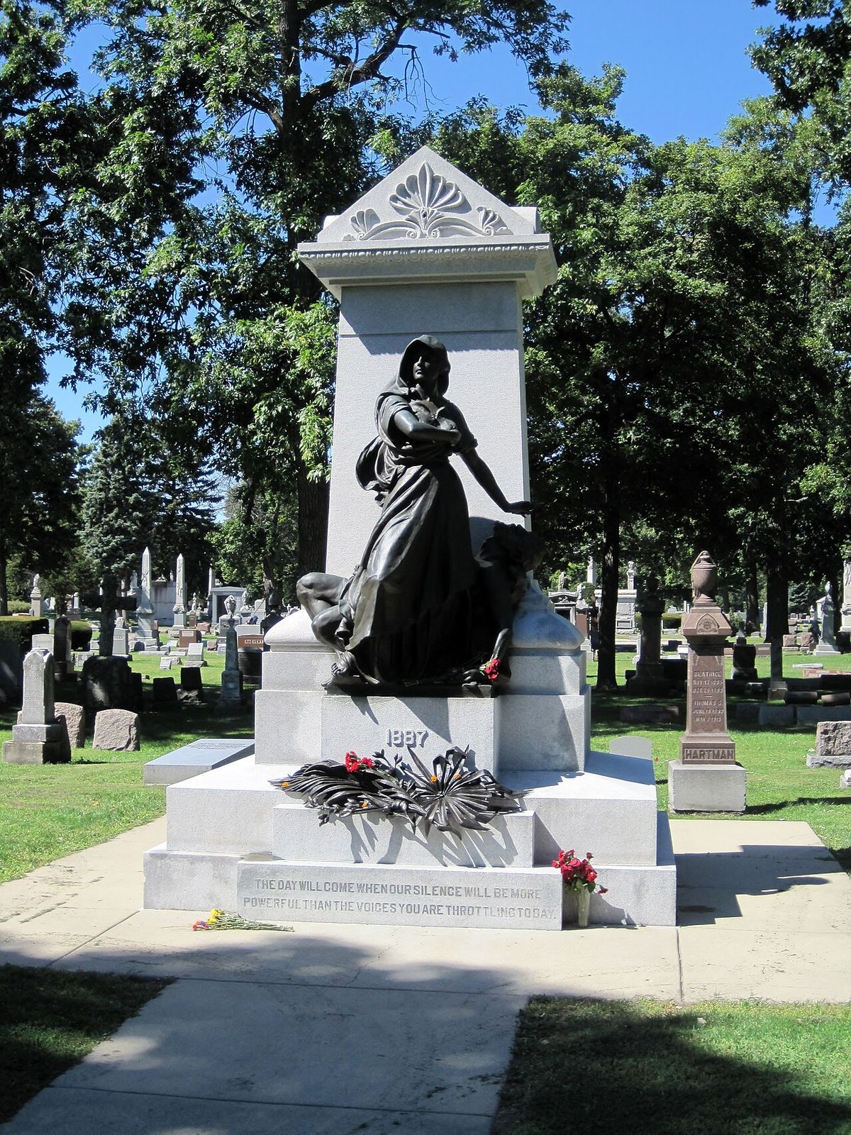 Since no cemetery in Chicago would allow the martyrs to be buried within, they were placed in Waldheim Cemetery. There was some reluctance, but the cemetery’s policy accepted everyone regardless of race, ethnicity, or politics.