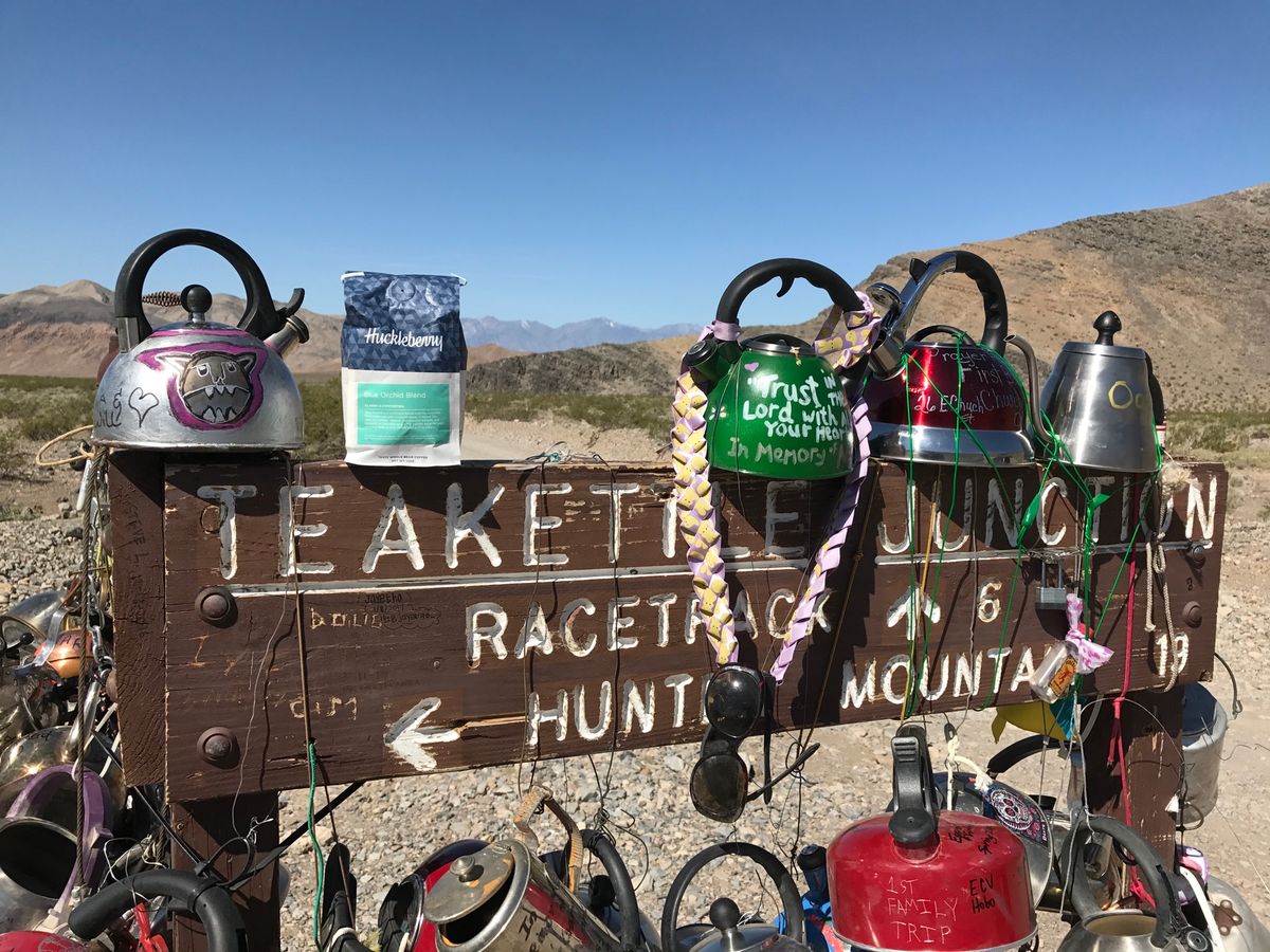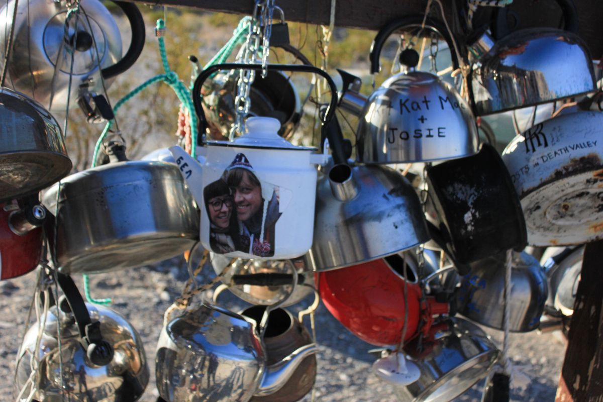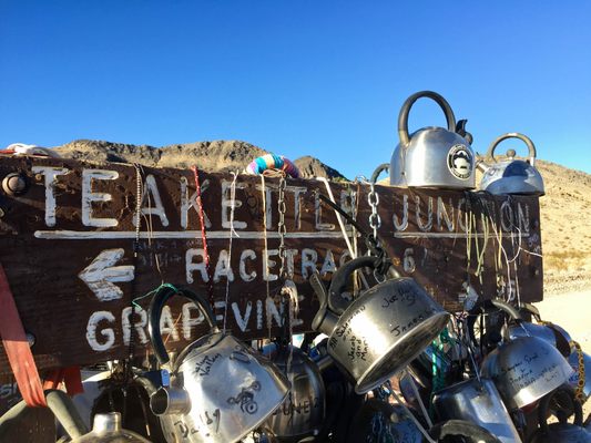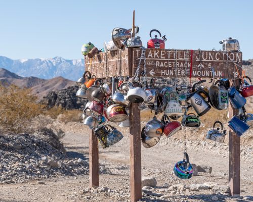 Checking out Teakettle Junction is a fun, quirky stop for those passing through Death Valley National Park while on the road to Racetrack Playa, the home to mysteriously moving stones. Be sure to bring a kettle to leave your own mark at this secret desert shrine.