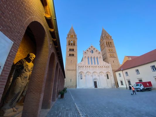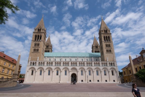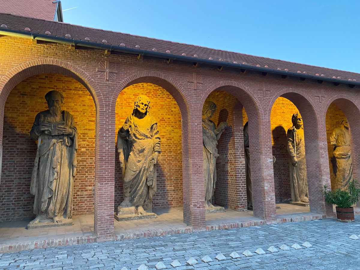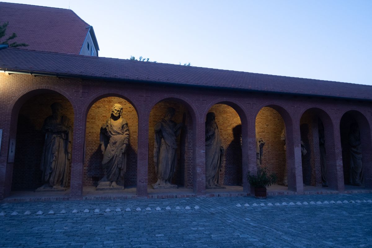 Once intended to stand at the top of the grandest cathedral in Pécs, the decaying statues of the 12 apostles now take shelter from the rain under an archway.
